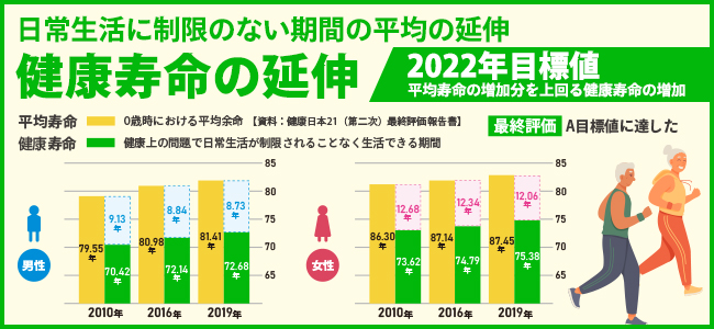 - 2022/10/11 『健康日本21(第二次)分析評価事業』サイト 健康日本21(第二次) 目標項目一覧及び現状値の年次推移を更新しました。
